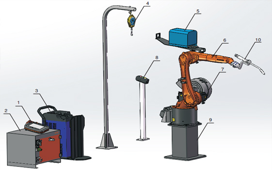 通常弧焊機(jī)器人由機(jī)器人本體及弧焊設(shè)備電源等部分組成,在計算機(jī)的控制下實(shí)現(xiàn)連續(xù)軌跡控制和點(diǎn)位控制?;『笝C(jī)器人主要有熔化極焊接作業(yè)和非熔化極焊接作業(yè)兩種類型,具有可長期進(jìn)行焊接作業(yè)、保證焊接作業(yè)的高生產(chǎn)率、高質(zhì)量和高穩(wěn)定性等特點(diǎn)。