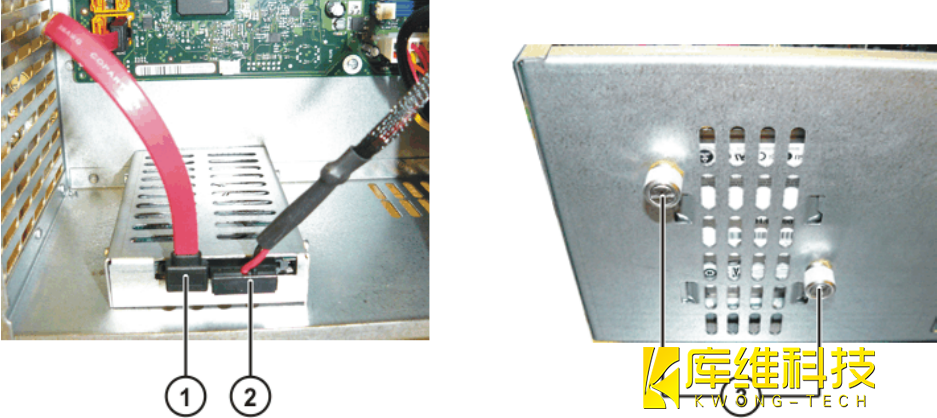 存儲盤劃分為三個分區(qū),其中第三個分區(qū)屬于隱藏的恢復分區(qū)。該分區(qū)可通過庫卡恢復工具來讀寫。第一 分區(qū)與 C 盤對應,而第二分區(qū)則與 D 盤對應。數(shù)據(jù)線通過 SATA 插頭與主板連接。